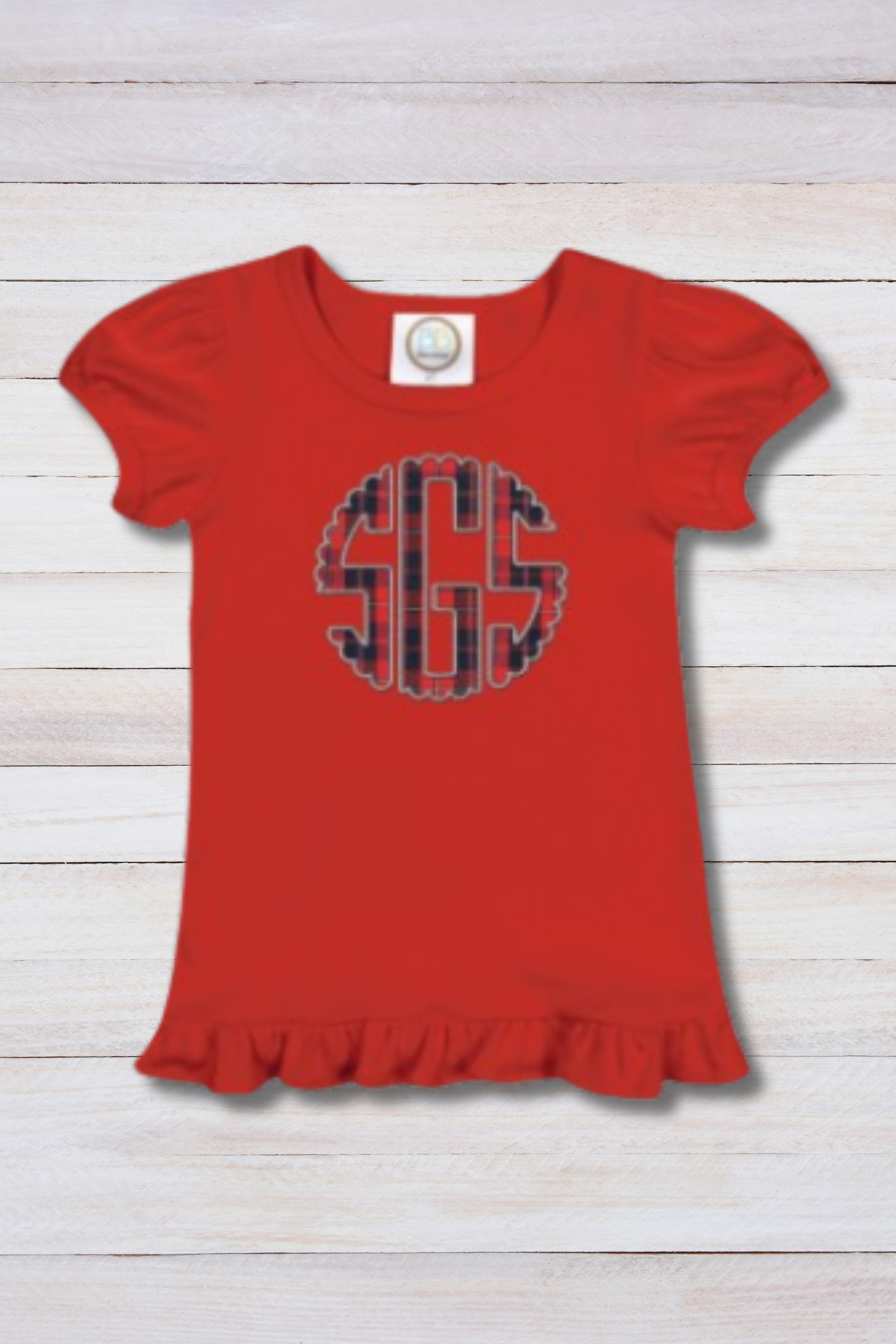 PRE-ORDER Girls' Plaid SGS Puff Sleeve Ruffle Top
